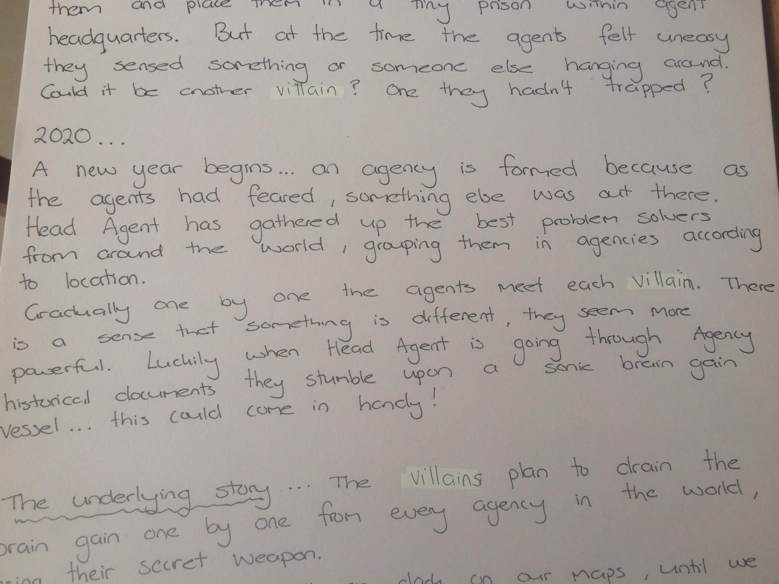 I hope you can read these ok, sorry for my messy scrawl, also excuse the twink, for some reason my holiday brain just couldn't get the word villain spelt right.